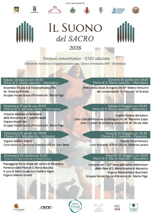 - Musica e Territorio: Non solo concerti statici, ma anche l'evento itinerante "Tracce Francescane a Marostica" (26 aprile), una passeggiata culturale tra le chiese del centro storico curata da Mario Guderzo e Stefano Rigon.